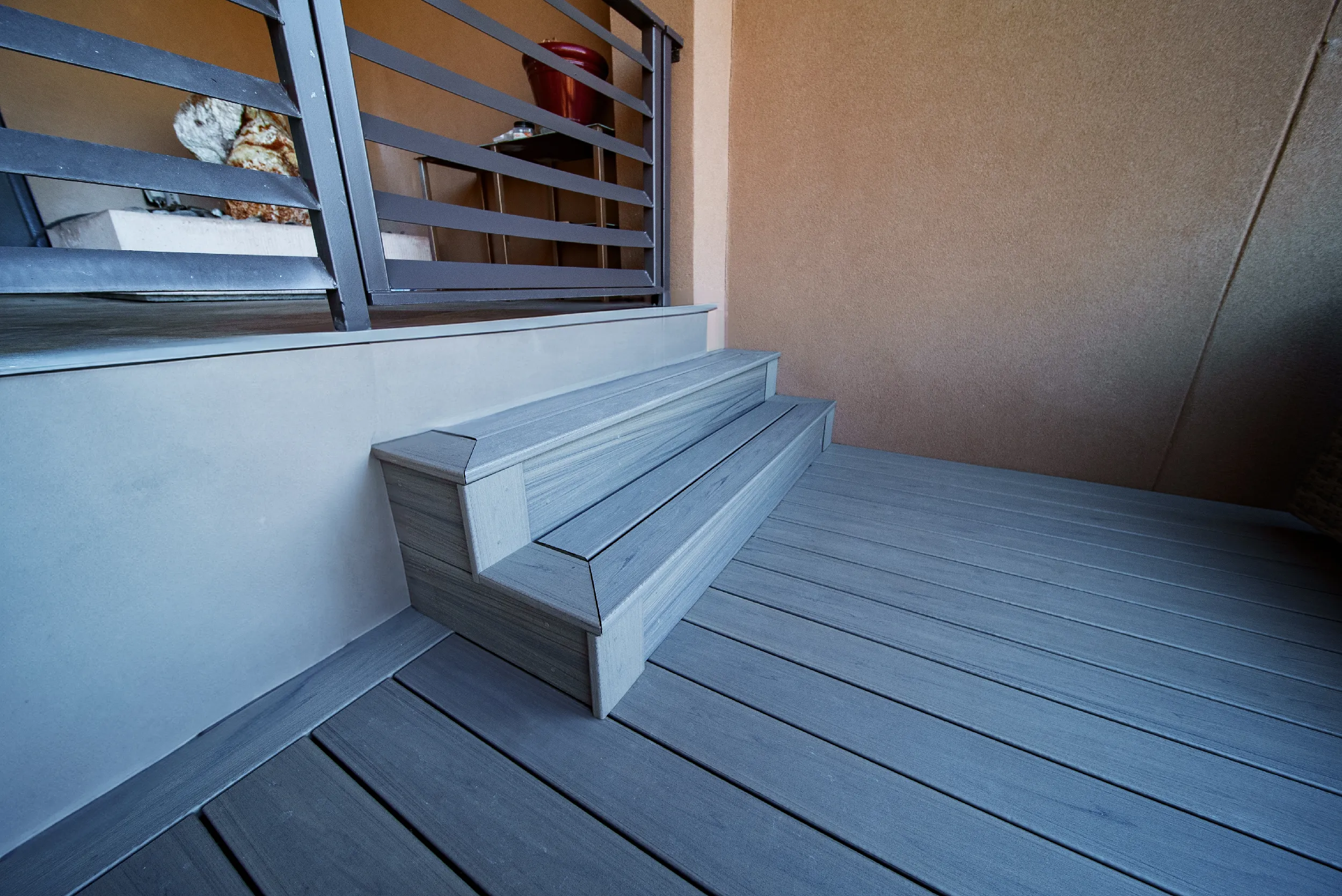 HBC Decks turned an outdated balcony into a fresh, functional outdoor space using Trex Enhance Naturals Honey Grove, blending style and comfort.
