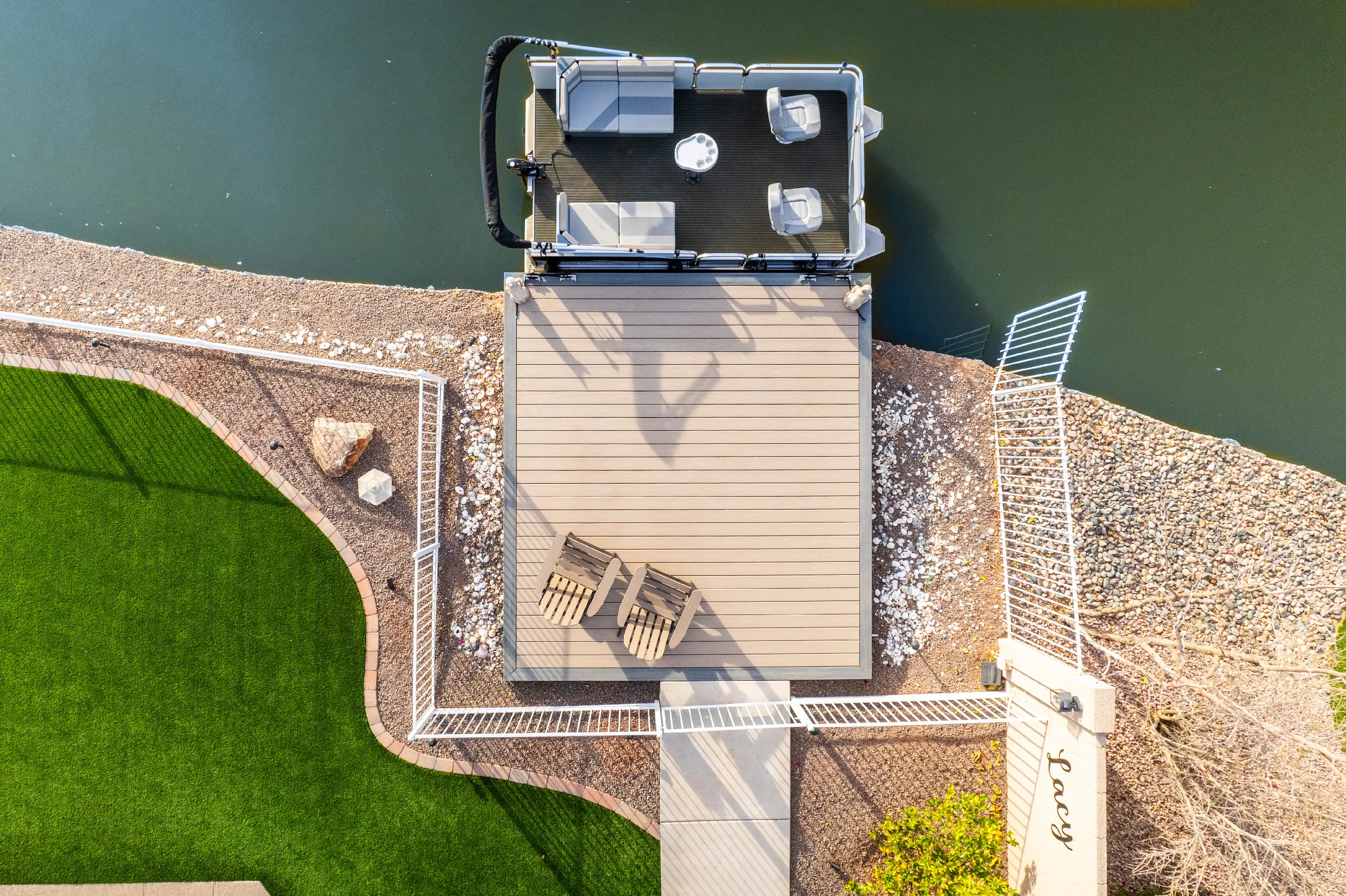 Susan and Mark wanted to replace their old, sagging wood dock using materials that would last for many years to come. In addition, given the jagged curve of the waterfront and over-water extension limits from the HOA, a creative design would have to be used to satisfy all the aesthetic and regulatory requirements.