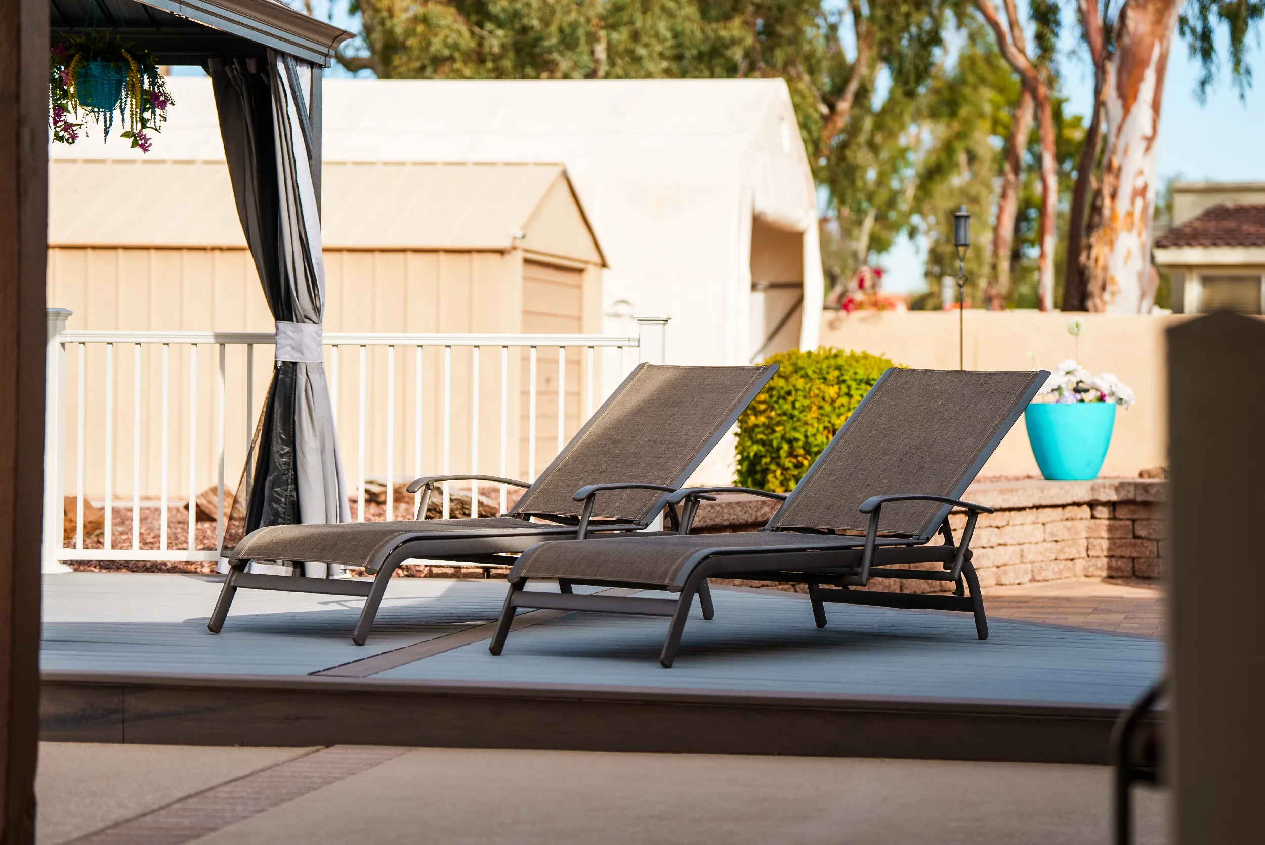 At HBC Decks we listened to the ideas Rick and Liz had, with Rick providing a hand-drawn preliminary deck design as an excellent starting point. From there, we used our Soft Plan system to create a sufficient foundation for both the deck boards and the aluminum gazebo. After reviewing Rick and Liz’s preferred color tastes, we recommended Rainier and Biscayne to combine the overall elements in their existing backyard oasis. Being the “hands-on” go-getters that Rick and Liz are, they took on the gazebo installation themselves after we had carefully crafted the deck for them and the outcome was incredible (although Rick and Liz later admitted that next time, they will hire HBC Decks to assemble and install the gazebo as it left them with, well, let’s just say memories they will never forget.